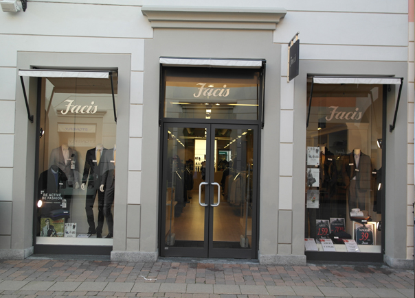 FACIS S.p.a. La storia del brand nasce negli anni 30 a Torino. Durante il dopoguerra il marchio Facis rivoluziona il mercato maschile. Nel corso degli anni tradizione e innovazion rendono più semplice lo sviluppo della collezione. Oggi Facis è presente in 11 più importanti store sparsi sul territorio nazionale. ALCUNE NOSTRE REALIZZAZIONI